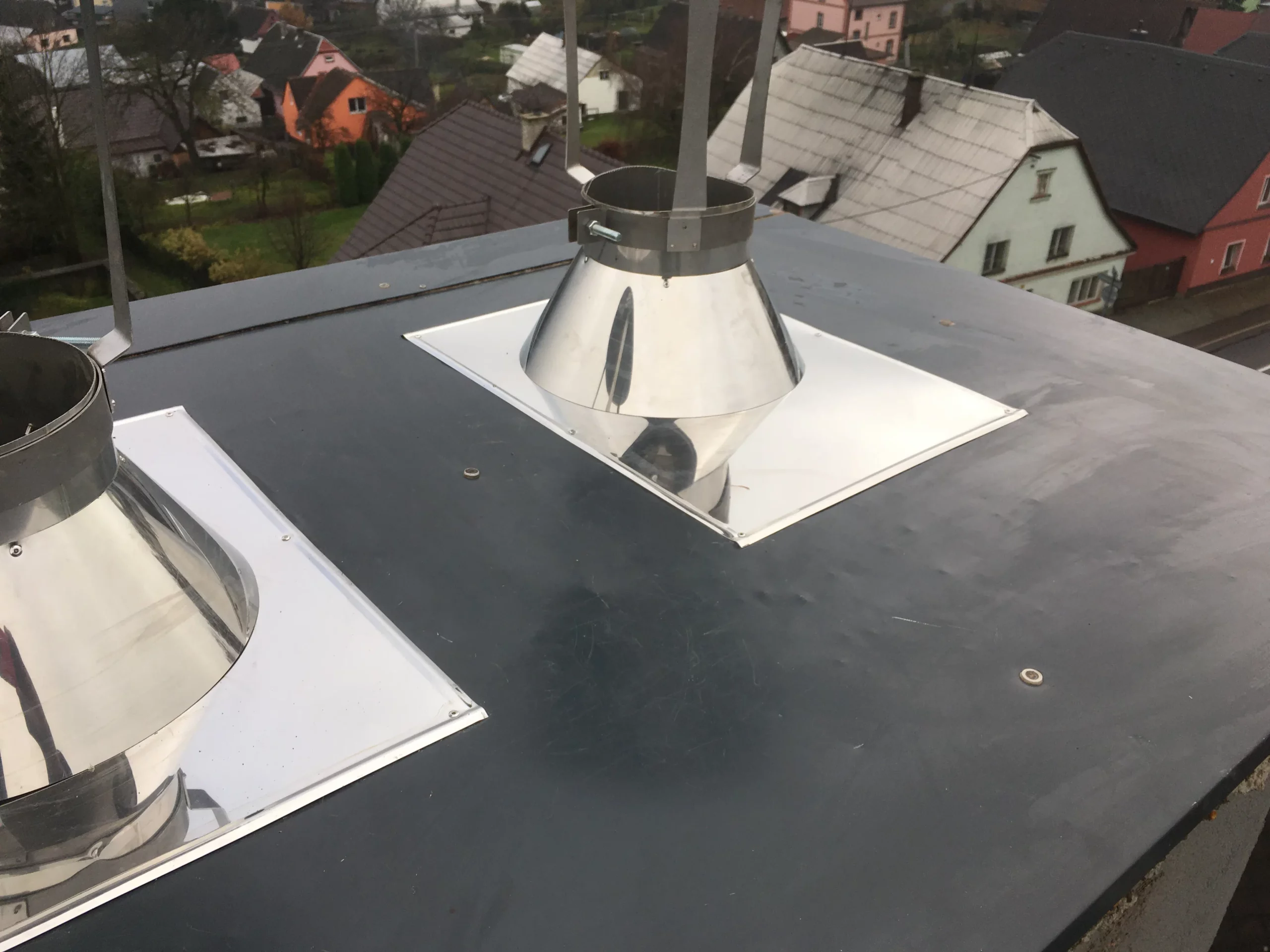 Jsme vybaveni klempířskými stroji na kterými dokážeme vyrobit atypické dílce jako excentrické redukce , pláště komínových nástavců , oplechování , atypické kouřovody , konzole a ostatní.